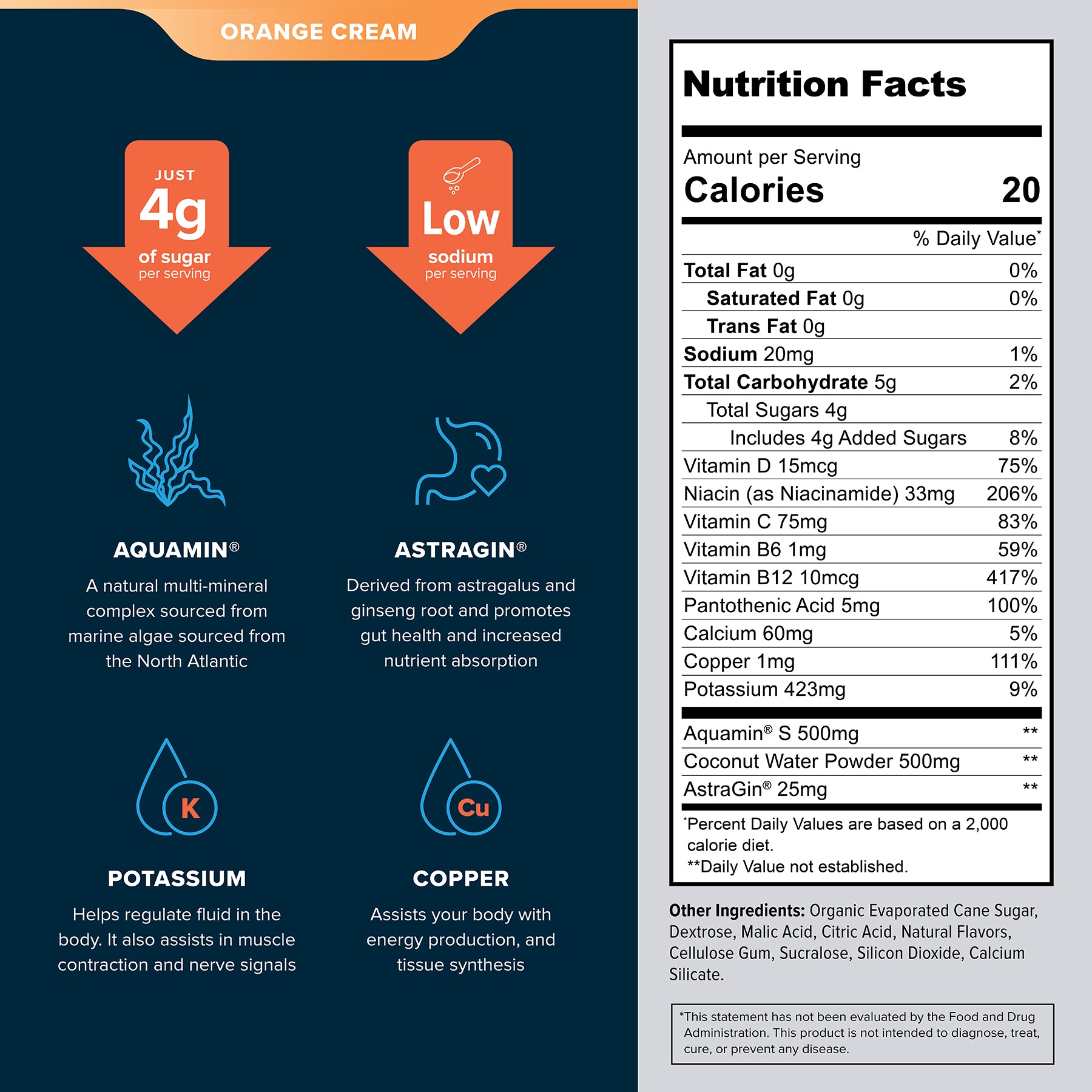 Hydra Aid™'s Oral Cellular Absorption Science is the secret to getting all the vitamins and minerals your body needs. To efficiently deliver nutrients to your bloodstream, small amounts of sodium and glucose are used. Hydra Aid is packed with over 70 trace vitamins and minerals that help maximize your hydration efforts. Our formula is made from real coconut + Aquamin marine minerals to support healthy cellular functions and gut health.